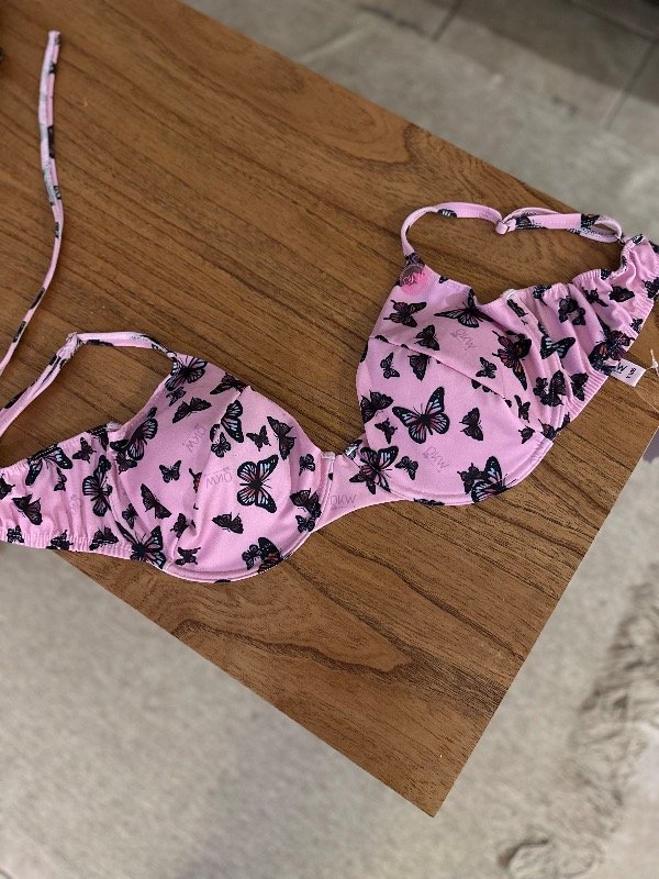 Top de bikini CON ARO, breteles y espalda regulables, tazas soft desmontable, confeccionado en tricot con protección UV, resistente al cloro.